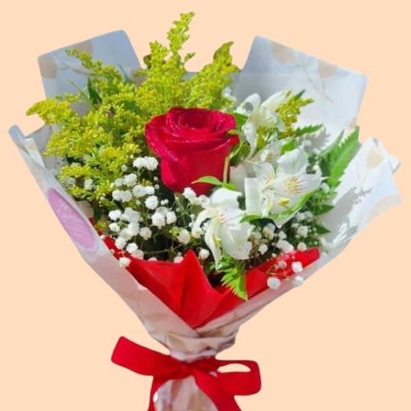 Buquê com uma rosa, linda e delicada.
