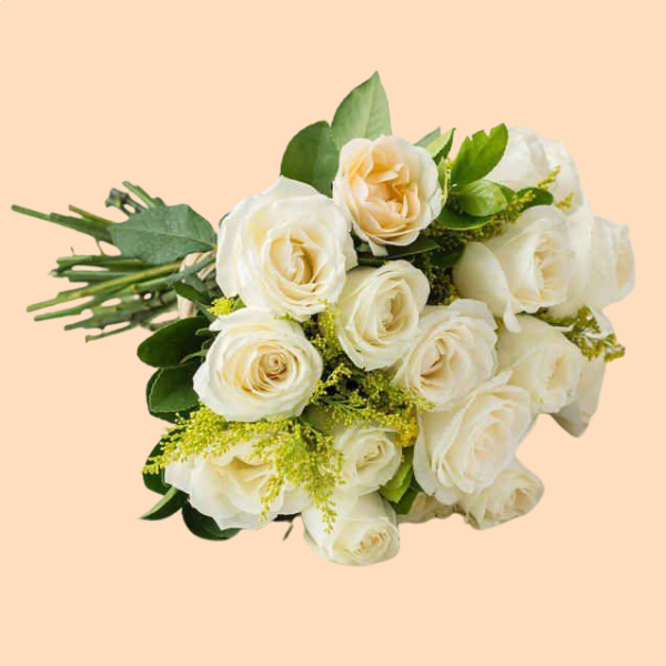 Ramalhete com doze rosas brancas.