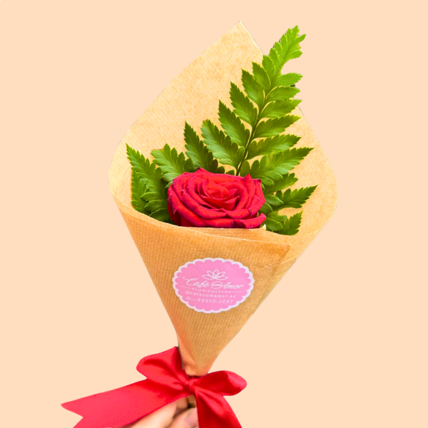 Lindo cone com uma rosa cor vermelha;